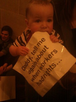 The Uptake’s summary beneath their live video coverage is explosive in its brevity: “Wisconsin Republicans pass a bill to strip public workers of collective bargaining rights. There is a call for a general strike. People are occupying the capitol.”